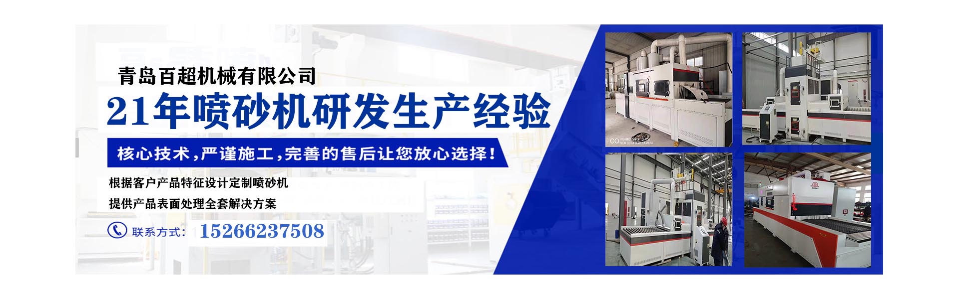 青島百超機械有限公司(原青島超良機械有限公司):屬國家科技型民營企業(yè),高新技術(shù)企業(yè),擁有20多項發(fā)明及實用新型專利和軟件著作權(quán),擁有自主“百超”品牌的注冊商標(biāo)。公司坐落于青島這座美麗的海濱之城,并在2024年迎來了新的篇章——搬遷至即墨區(qū)的前東城村陡溝200號新址,在這里,6000㎡的研發(fā)生產(chǎn)基地正迸發(fā)出無盡的創(chuàng)新活力。公司擁有一支行業(yè)領(lǐng)先的設(shè)計、結(jié)構(gòu)、程序工程師團隊,以及專業(yè)的工程技術(shù)人員和售后維修工程師隊伍,備有充足的備品備件倉庫,始終堅持真誠、高效的服務(wù)理念,為客戶提供全方位的技術(shù)咨詢、安裝指導(dǎo)、維修保養(yǎng)等服務(wù)。公司主要生產(chǎn)的產(chǎn)品有:①搖擺輸送式自動噴砂機系列;②360°旋轉(zhuǎn)輸送式自動噴...
